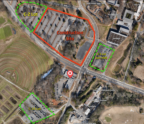 CONSTRUCTION UPDATE: Due to ongoing construction, parking in the Surplus Lot is limited. Please use lots C-2, C-14, or E-3 as designated alternate parking areas.