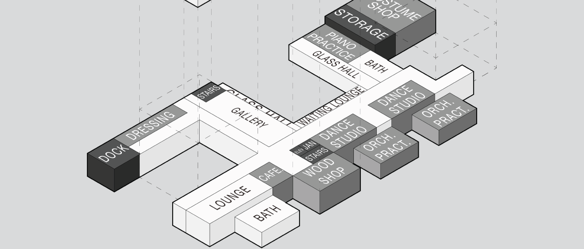 This project, titled Engrained, is located in Cayce, SC and focuses on connecting two performance spaces through central hallways of varying hierarchy. Every design decision considered the grain and flow of movement throughout the building. Performance, learning, public, and supporting spaces split the building into two realms: the left accommodating the public from downtown Cayce, and the right focusing on learning spaces to students who come from the parking lot. Materials, like brick, were chosen to tie into downtown Cayce, but the building incorporates metal siding to stand apart.